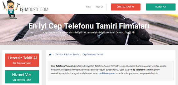 Pratik bir online hizmet bulucu olan isimdustu.com, sadece akıllı telefonların tamiri için değil, tüm elektronik cihazlarınız, evinizin dekorasyonu, temizliği, özel ders ve internet reklamcılığıyla ilgili her konuda hizmet alabilirsiniz.