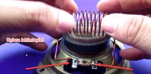 Sarmış olduğunuz bakır telinizi bozuk olan hoparlörün üzerine silikon yardımıyla sabitletyin.