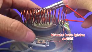 Mıknatısı aynı resimde gösterildiği şekilde bobinin içine yerleştirin.