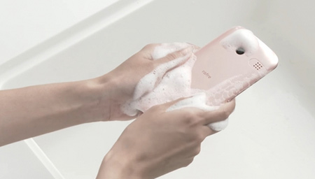 Suya ve sabuna dayanıklı, hijyene önem veren akıllı telefon Kyocera Rafre KYV40 ıslakken bile kullanılabiliyor. Yani akıllı telefonu neredeyse yıkarken bile kullanmanız mümkün. Hem de bu duruma dokunmatik ekran da dahil. Cihazın sahip olduğu sertifikalar IPX5, IPX8 ve IP5X.